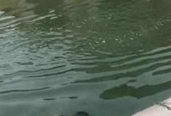 The video exhibits the entrance of the home that's water-logged.