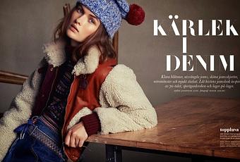 The latest issue of Elle Sweden shows how to bundle up in denim with a fashion editorial photographed by Honer Akrawi... Model Lara Mullen is ready for the elements in array of trends ranging from sports inspired to 70s-influenced looks. Stylist Josephine Aune dresses Lara in looks from the likes of Cheap Monday, BLK DNM and Levi’s in the studio snaps. / Hair by Dejan Cekanovic, Makeup by Pari Damani