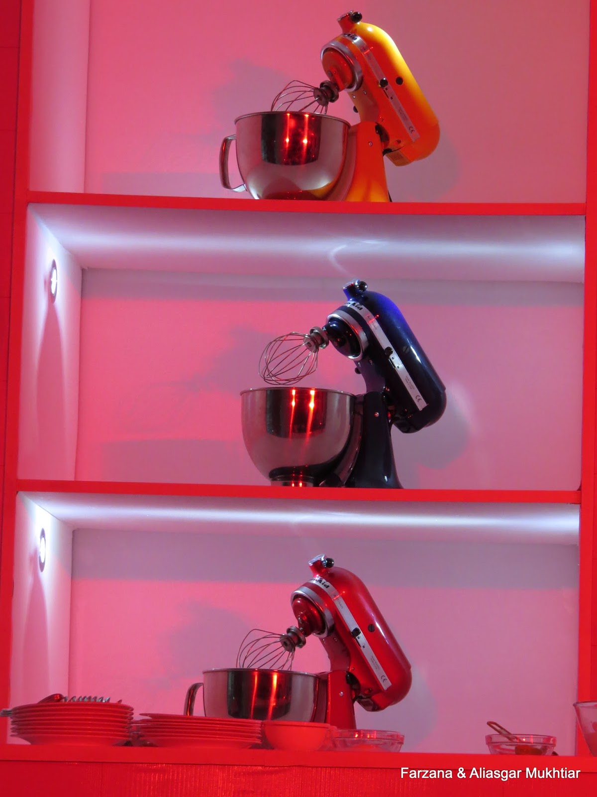 Live counters where you could experiment with the Kitchen Aid appliances for the real feel .