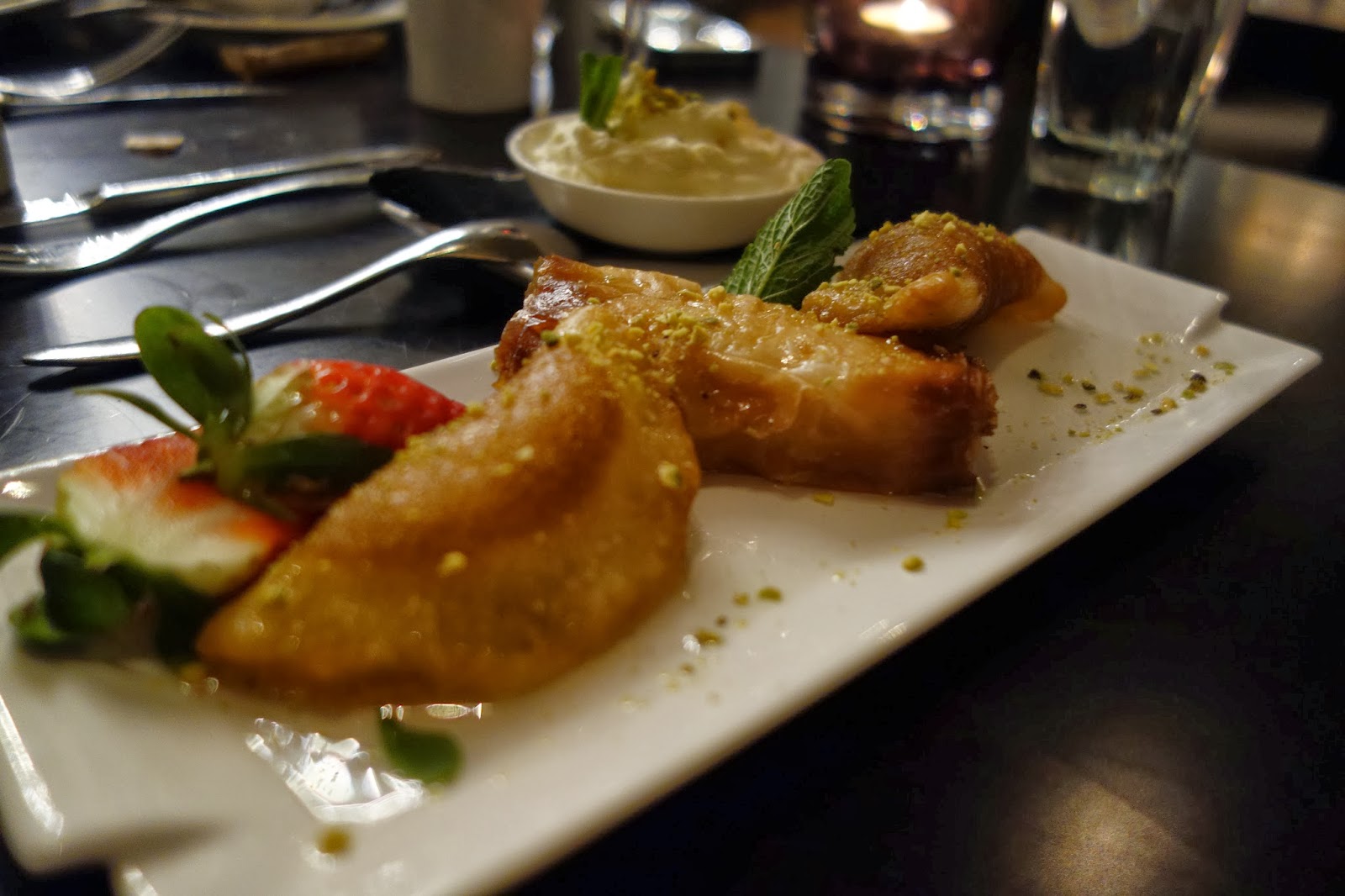 Lebanese Pancakes £6The crepe was filled with sweet cheese, drizzled with dark chocolate and finished off with fresh strawberries.