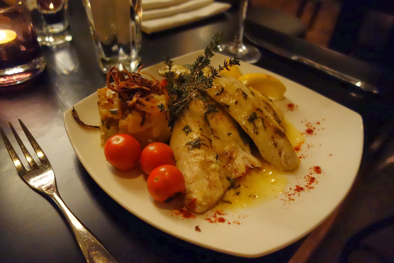 Layla gave me a generously sized fillet ;] however I was thrown back because the sea bass was not properly deboned. So you can imagine my pain at having to pick out multiple niggling bones as I chewed.Despite that set back, you can tell the sea bass was fresh as the flesh was crumbly and you could really taste that it was infused with garlic and lemon. It would have been perfection, if it wasn't for those damn bones.
