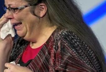 (This photo of Kentucky County Clerk Kim Davis is from the Louisville Courier-Journal.)When the Supreme Court ruled last summer that same-sex couples have the same marriage rights as all other couples, there were a few county clerks in the country that tried (and failed) to fight the ruling. The most famous of these bigoted clerks was Kim Davis in Kentucky.