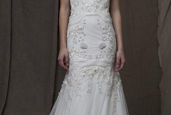 I’ve been a longtime fan of Lela Rose’s feminine designs. Through beautiful color palettes and handcrafted details, her aesthetic is both elegant and whimsical. The Lela Rose Wedding Collection, embodies an effortless elegance brides dream of. Blending intricate details and delicately embellished fabrics that hug a bride to perfection, the collection exudes a one of a kind casual refinement. The Trellis‘s elegant silhouette gets a touch of vintage embroidery and sheer top, that is perfect for a romantic garden wedding, or glamorous affair.