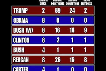 First, let's compare the administrations on a one-to-one basis as to which has and has had the most--and least--criminal indictments, convictions and prison sentences.