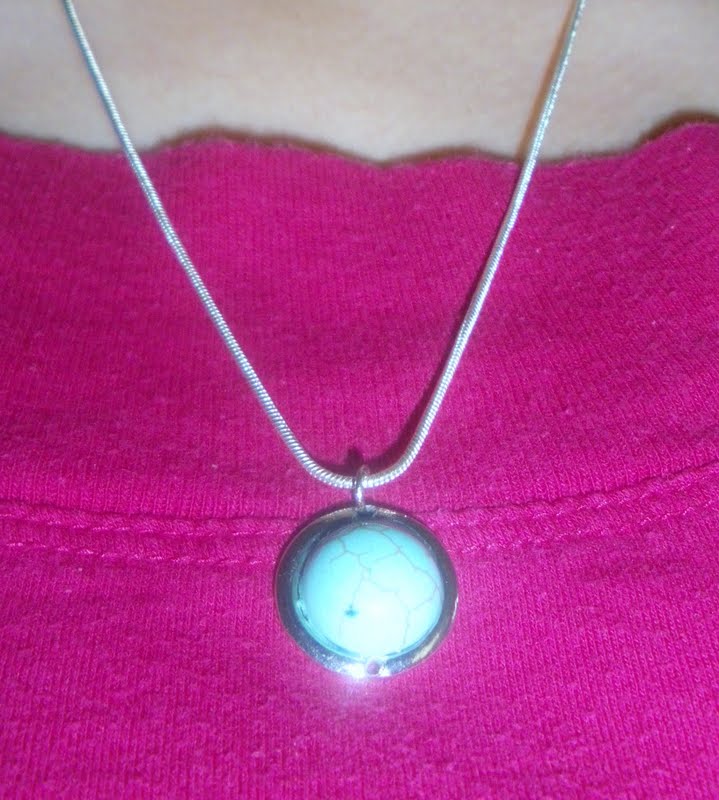 It thundered a little this morning, but during the afternoon the rain came pouring down from the intimidating violet-coloured sky. Since it was a little chilly, I wore a thin long-sleeved crimson sweater from Garage, Makers of True Originals jeans from Simons and a turquoise pendant gifted from Punta Cana (courtesy of Best Friend).