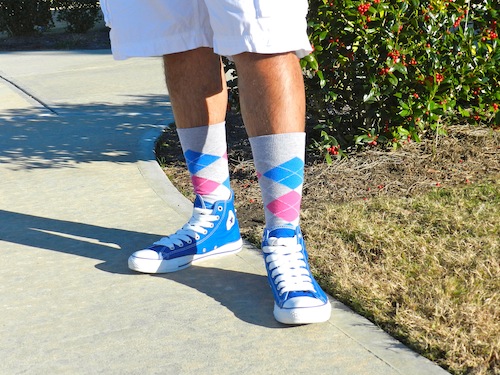 I spotted my Fashionisto this week strutting his cool toned blues on the streets of SAV. From his hiked up argyle socks to his timeless Converse All-Stars, I couldn’t resist this look. Every Fashionisto should own a pair of Converse. Check out these for an effortless vibe every time. Sock’s the limit is what this Fashionisto’s style screamed at me this week. Dress socks are a perfect way to spice up a bland outfit. Not only can you wear them with a nice pair of slacks but for a casual feel, pull them up and wear them like my Fashionisto has. You can find all different styles and colors here. Don’t be afraid to be a little daring once in a while, boys! After all, sometimes fashion is something that just happens. Go with your instincts and you are bound to put together an effortless look!