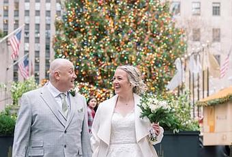 Lianne and Stuart’s engagement began in New York City and it also ended there when they got married! They got engaged two years previously by the Christmas tree at the Rockefeller Center, so they had wanted to take some photos by the tree on their wedding day. Stuart hadn’t been prepared with a ring, “instead he used a tree ornament of the Christmas tree which he’d bought from the Rockefeller Center gift shop the day before,” Lianne said. She also told me that the ornament goes on their tree every year as a memento. They were ready to get married because it feels like the next step in their relationship. “We wanted to stand up in front of each other and the people we care about and make a commitment to one another for the rest of our lives,” Lianne told me.