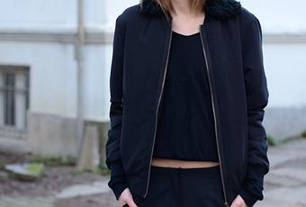 Black never gets boring for me. The fact that I have a wardrobe full of different black items makes that I can wear black every day but never have to look the same. Not that I mind though, because I can easily wear an outfit time and time again. I don’t think I’ll ever have enough black clothing, and I keep adding things to my wardrobe when I feel like they need to be in my ‘black-collection’. Like these trousers that have the perfect fit and details, are dressed but casual and feel expensive but are quite budget friendly. Or a shearling collar bomber jacket, because I have a weak spot for bomber jackets, and the shearling collar on this one made me need it. Sometimes I think I could get rid of all the not-black items in my wardrobe and dress all black every day, but then again and couldn’t miss the gray stuff. Or leopard.