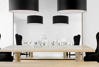 In the Pacific Heights neighborhood of San Francisco, what started off as a decorating job turned into a full-blown renovation for Nicole Hollis, founder of Nicole Hollis Interior Design. The kitchen opens up to the dining room, where Hollis played with size and shape. She hung two Piet Boon-designed drum pendants over the table and placed a large mirror on the wall to extend the space so that the person sitting on the bench can see the living room fireplace in the reflection.