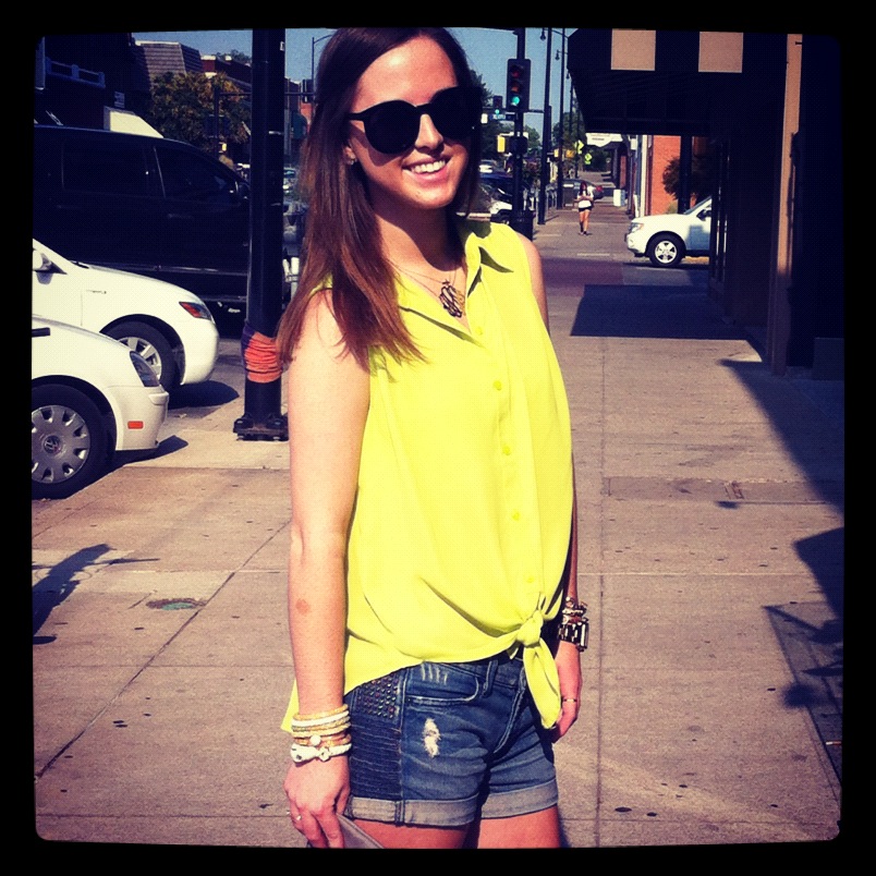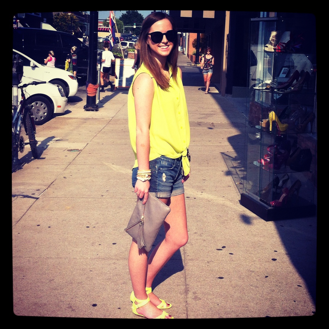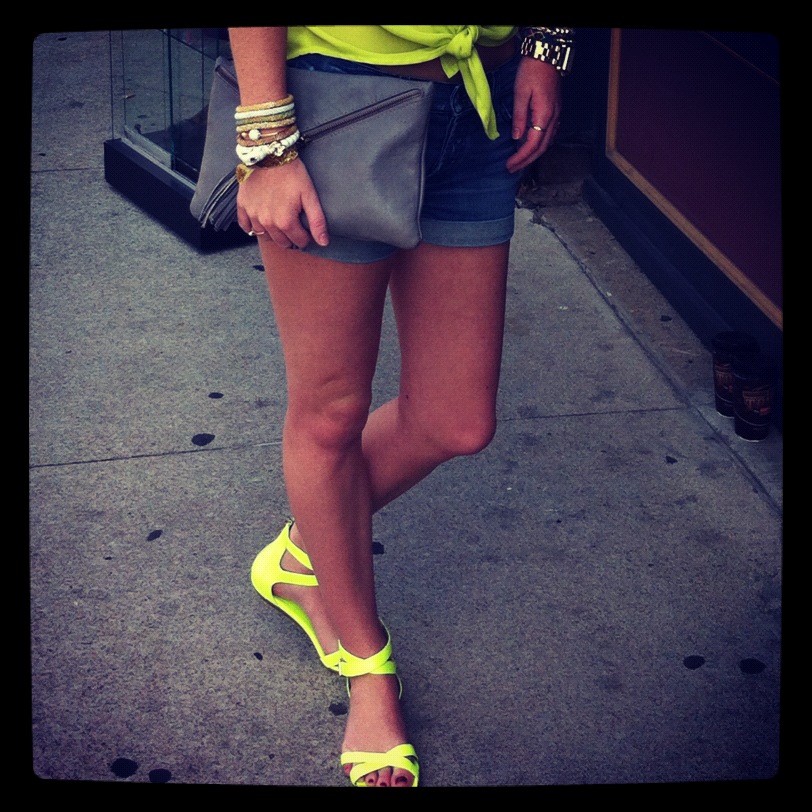 Here I go with the neons again! I love how light and breezy this Express shirt is (find similar here), but best of all it matches my favorite pair of Rebecca Minkoff sandals! I know some people think this trend should be left back in the 80's but I can't get enough. At least I know people will always see me coming :) How do you guys feel about neons?