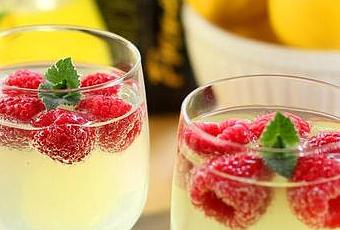 - 4 oz cold sparkling wine or lemon flavored sparkling mineral water