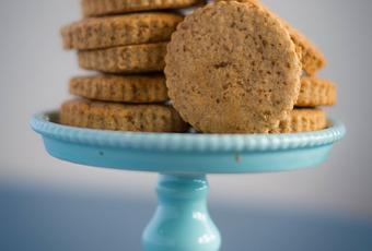 Preheat oven to 350 degrees Fahrenheit. Line a baking sheet with parchment paper. Set aside. In the bowl of your kitchen aid or stand mixer, combine flours, baking soda, cinnamon, salt, and coconut sugar. Mix until well combined. Add butter and mix until coarse crumbs develop. Add water and honey, mix until dough comes together easily into a ball.