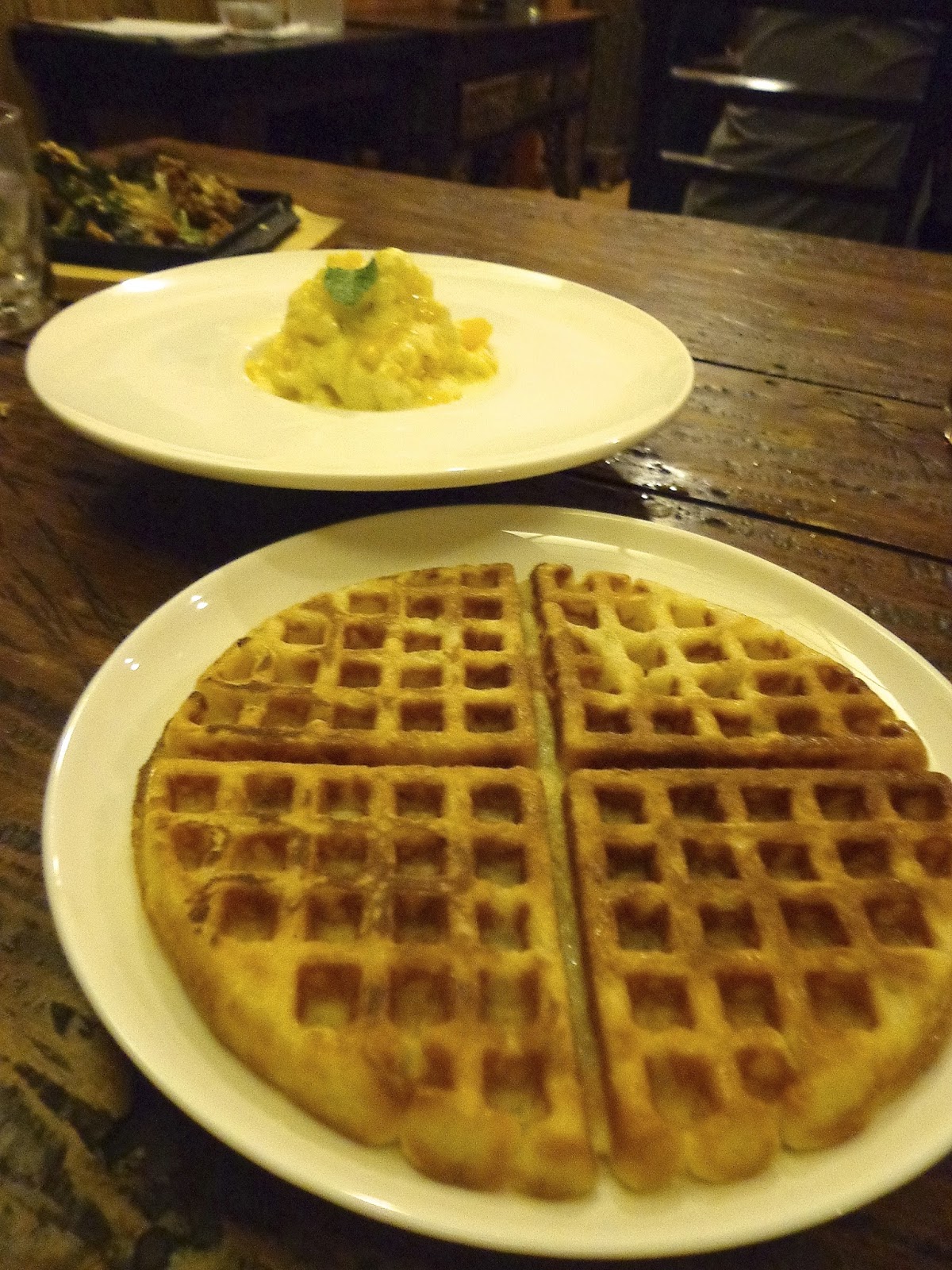 After all that food, which was way too much for just two people by the way, Mr. Mark dropped by and offered us dessert. He recommended their homemade kaffir lime mango ice cream with a waffle. I didn't fancy the waffle much but the ice cream was definitely unique. Fresh mango cubes were abundant and the texture was smooth and creamy with a hint of Thai mint. One thing's for sure, it's not your typical sweet ice cream. ;)