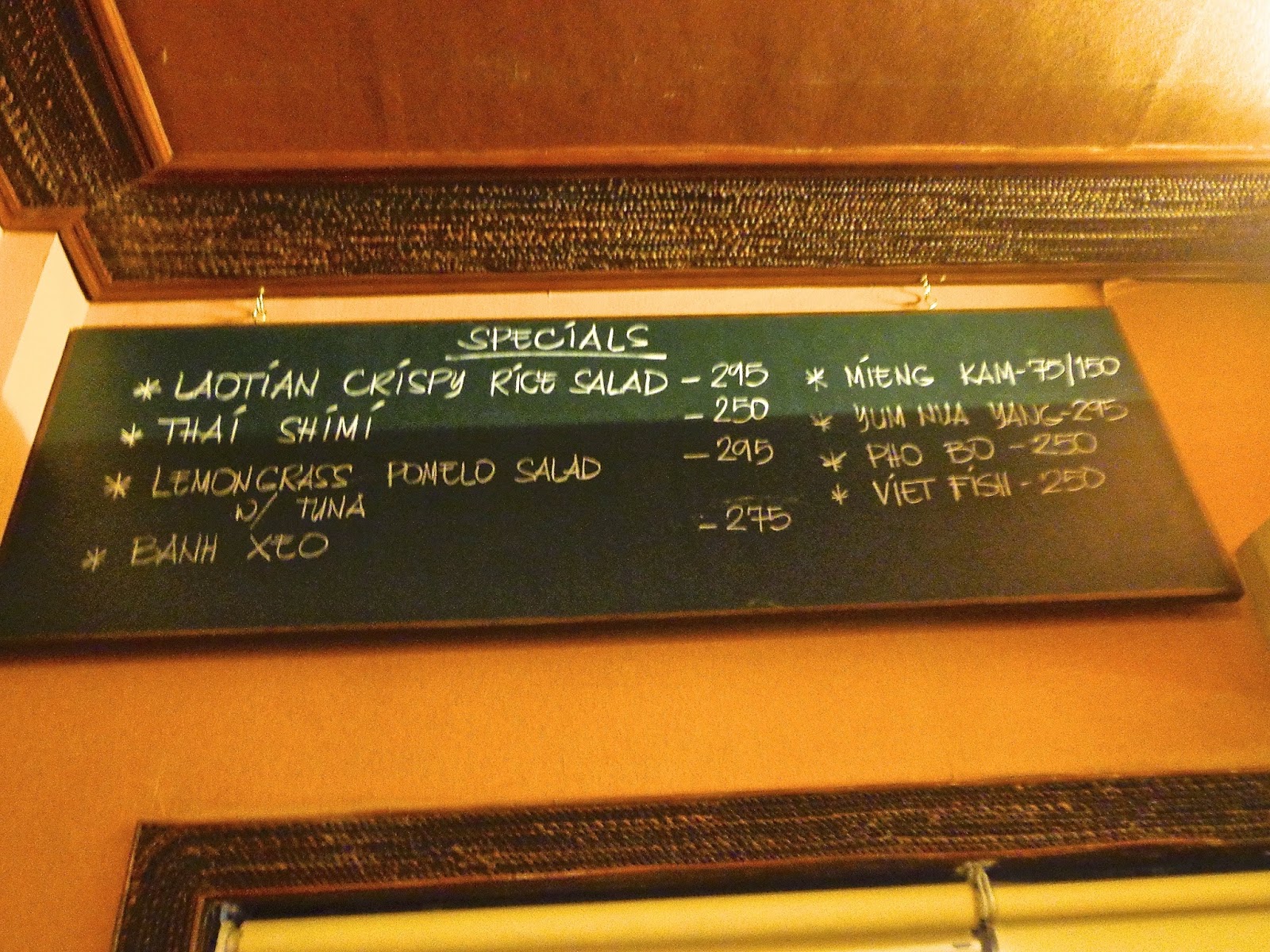 I was invited to their opening night last month. Of course, I was excited to first see the setting. They had both an indoor and outdoor dining area, furbished in consistency with their first branch's ambience. I stayed indoors where it portrays a simple yet sophisticated restaurant atmosphere. If you wish to feel like you're eating Thai-Viet street food, by all means go for the outdoor dining area. ;)