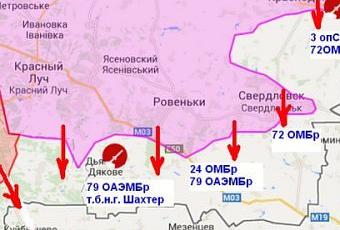 In the map above, the Azov Battalion is the Number 6 with the Cyrillic lettering that looks something like Azov. As you can see, they are in the Southern Cauldron region. Whether they are completely surrounded or not, I am not sure. They look to be pretty hemmed in though. The orange and pink on the map are areas more or less controlled by the Novorussians.