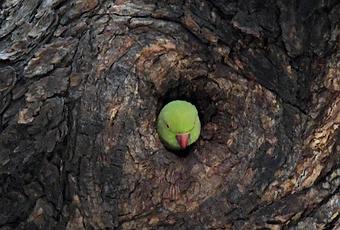 A tree hollow is a cavity in a living tree. Tree holes can be caused when an injury to the tree, such as breakage of a limb, creates an opening through the bark and exposes the sapwood. The sapwood is attacked by fungi and bacteria, which form a cavity in the bole of the tree. It can be created by tiny insects and birds too !!
