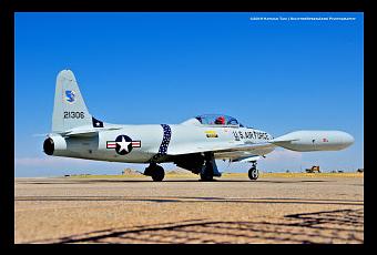 Greg Colyer’s T-33 “Ace Maker II” at rest after his performance at the Air Power Expo airshow at Travis AFB. Greg now has a fleet of three T-33s to cover his airshow appearances across the country. This classic jet warbird first flew in 1948 and over 6500 were produced by Lockheed and Canadair (CT-33) in Canada. Greg founded The T-33 Heritage Foundation, dedicated to obtaining, restoring, preserving, and maintaining Lockheed’s P-80, F-80, TF-80c, T-33 Shooting Star and America’s other Korean War era aircraft. Nikon D300 w/18-200mm.