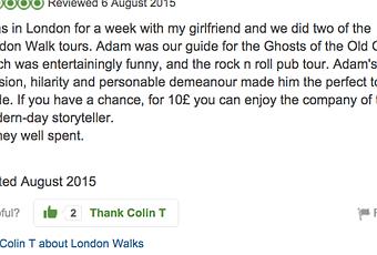 As midnight approaches on the 3rd day of this Halloween month 2016, here's a couple of reviews for our London Walks ghost tours…