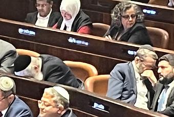 despite voting in favor of Amir Ochana's appoitnment to Director of the Knesset, MKs Moshe Gafni and Meir Porush (both UTJ) put their heads down when Ochana gave his inaugural speech. Seems a little hypocritical to vote for him but then to publicly turn away during his speech, but that's what they did...I am waiting to see if Avi Maoz did the same or not