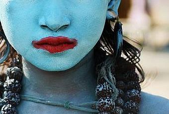 Shiva, the third god of the Hindu triad, has three eyes, the third one (between the eyebrows) being usually closed, except at the time of destruction of things. He wears long hair, supports the hol...