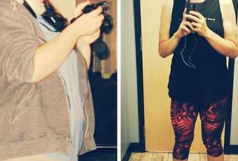 Emily has lost half of her body weight - going from 300 lbs (136 kg) to 150 lbs (68 kg). Truly impressive!