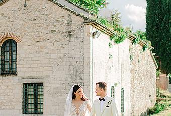 Florenia and Evangelos got married in Ioannina and Philanthia Events made everything they dreamed of for their wedding day come true and the result was beyond! The church entrance was beautifully decorated with a wonderful floral garland of white hydrangeas, orange roses, greenery and wooden details that gave the decoration a chic rustic flair! The bridal bouquet was absolutely gorgeous with orange, dusty pink and white roses and orchids while the guests came to celebrate with the couple this special day after receiving the beautiful invitations prepared for them by To Monogramma. Florenia looked stunning in her Primalicia Bridal Designers wedding dress while she can’t wait to meet her future husband-to-be!