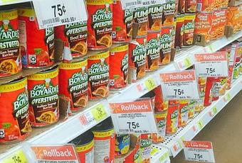See the entire list of great Chef Boyardee 14.5 - 15 oz cans on rollback price:https://docs.google.com/spreadsheets/d/1T0KEogmmH2...While shopping at Walmart, be sure to look for the Rollback signs for Chef Boyardee in the Canned Food aisle!