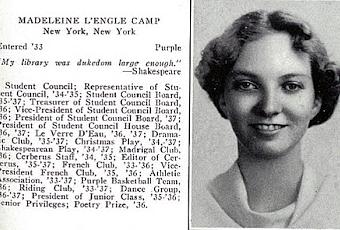 It is often fun to find a photo of a successful person as a young person. This reminds us that everybody started somewhere. This is Madeleine L'Engle's yearbook photo