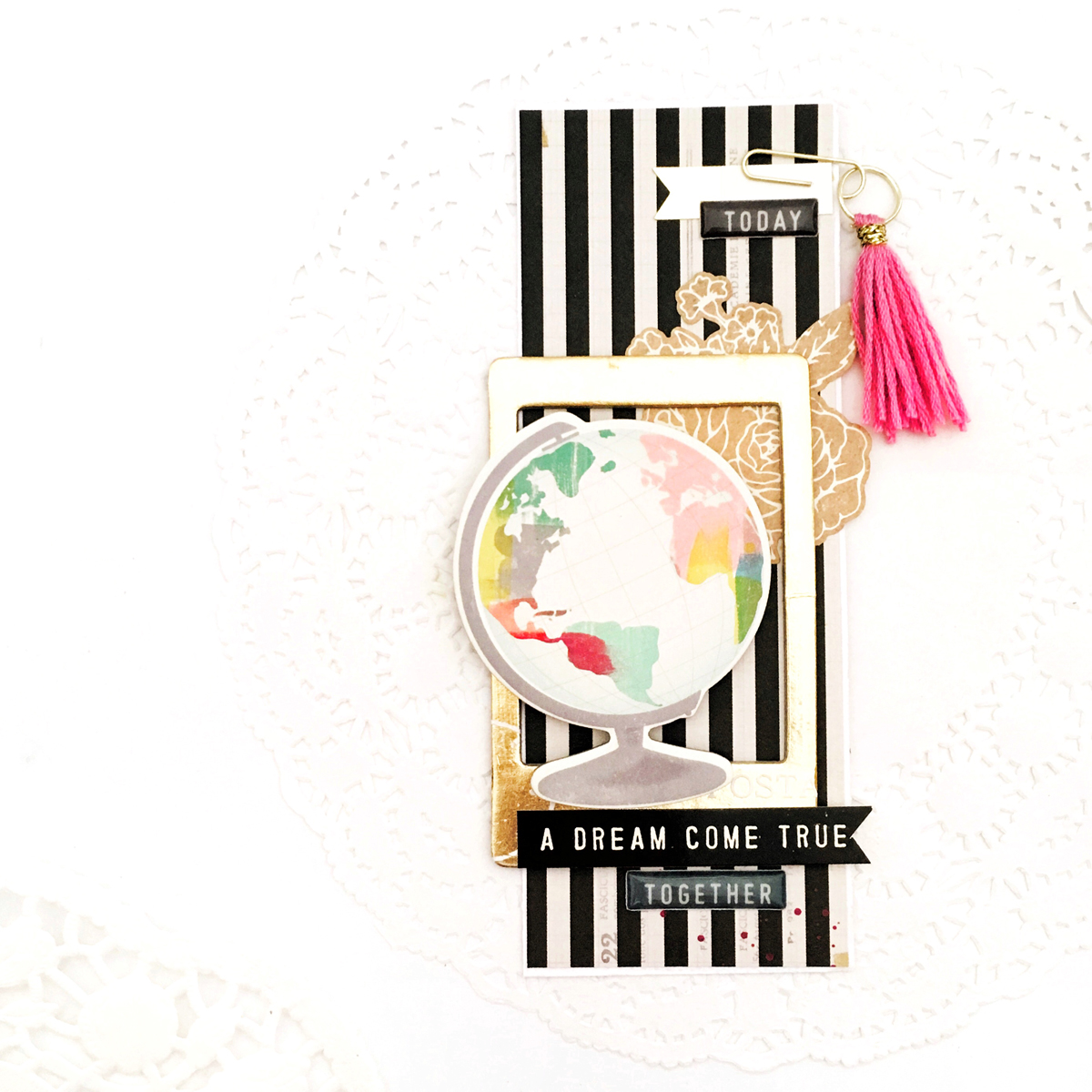 A couple months back, I created some brush lettering bookmarks for my church friends and they were very well received. With the same idea in mind, I decided to use Maggie Holmes products to create a bookmark too. I absolutely love the end result of my bookmark. I truly love the pop of colours against the b&w stripe paper. The different textures and dimensions on the bookmark gave an interesting look as well. And that pretty tassel sure completed the look!