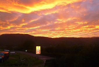 The sky is so vast here, framed nicely by the hills across the road giving edges to the shots I take with my little 'point it and shoot' digital camera. The panoramic shot dims and mutes the colours but shows the variance wonderfully.