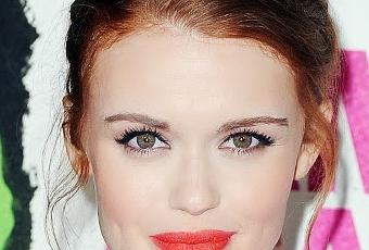 Today's makeup look is Holland Roden's matte orange lip and winged eyeliner, flush on cheeks that looks naturally hers.