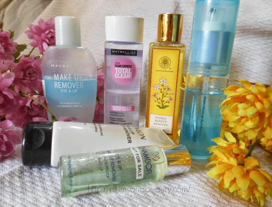 - budget friendly : Lakme Absolute bi-phased makeup remover (Rs 225), Maybelline eye and lip makeup remover (Rs 275), Maybelline Express Total Clean Up Makeup Remover (Rs 275), L'Oreal Paris Dermo Expertise Gentle eye and lip Makeup Remover (Rs 425)
