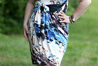 After the tragedy in Bangladesh, I am trying to be more conscious of where my clothes are made and under what conditions. I have always been a fan of Karen Kane for creating comfortable, flattering, and stylish clothes for a broad range of sizes, but am even bigger of a fan because their clothes are made in the US. While Karen Kane is a pretty big company that is sold in major department stores, working with them is like working with a small company. I get emails from Karen's son,they have a very personal and intimate Instagram account where you actually see Karen at work, and they strive to please their customers. I saw this dress and knew it would be flattering and I was right. I like that the knot in the front is self-tie, so you could just tie it once, knot it tight, or do what is most flattering to your own figure.