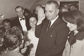 Lyndon Johnson swearing the oath of office