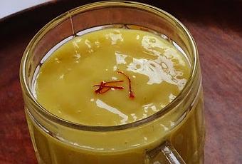 - Put sliced mangoes in a blender and add sugar and beat it finely.