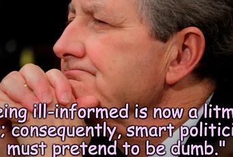 The Celebration stage has produced a bulging roster of highly-educated politicians who strive to sound like morons every time they open their mouths: Ron DeSantis, Ted Cruz, Josh Hawley, Elise Stefanik—and the singularly irritating Sen. John Neely Kennedy of Louisiana.