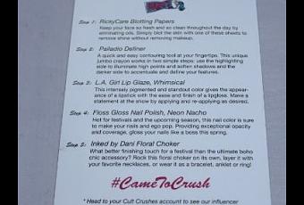 Ricky’s Cult Crushes subscription box gives you the chance to test our hottest brands and products – both classic and new – and learn how to optimize them through exclusive online tutorials lead by influencers we love. Once you sign up, you are more than just a subscriber – you become a member of cult – and are treated as VIP during your online shopping experience. This means you receive 10% off all online purchases and receive free shipping on purchases of $50 or more. So, the next time you’re in the mirror creating a look to match your mood you can pull out our how – to kits to help you get there. This way you’re ready to step out confidently, strut your stuff and say you #CameToCrush.