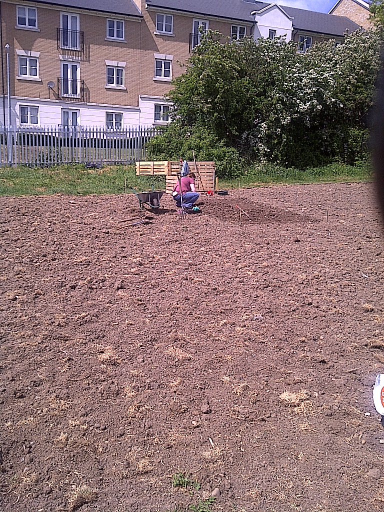 The first few days were Hellish Temperatures in the high 20's Celsius and because it was quite late into the planting for veg we had to get some potatoes into the ground and fast if we were to have a good crop this year. we were not sure what to go for this year as we just wanted to get something in the ground so we went for 3 variety's, King Edward, Sante and Maris piper all good potatoes.we were at the plot now Known as plot 58 every day for the first week preparing the ground as it was pretty poor.I managed to salvage 4 old pallets and soon whipped up a compost bin ready to receive the bounty of waste, to create compost.and that's how the great Veg journey started..........................
