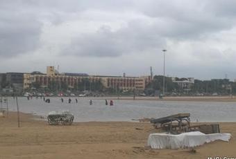 At the famous Marina beach, there was puddles of water in the sands opposite to Vivekanandar Illam – and on 9th Nov 2015, when rain stopped for awhile in the evening, the sea looked very rough.