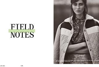 Marine Deleeuw layers up in autumn fashions from top designer labels including Miu Miu Stylist Michelle Cameron selects a mix of fur coats, worldly prints and heavyweight knitwear perfect for her natural surroundings. / Hair by Joey George, Makeup by Asami Taguchi
