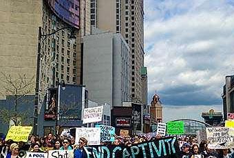 After years of protests, in 2013 Marineland obtained a court order restricting MAD’s use of megaphones and prohibits the use of certain language including, “abuse,” “animal abuse,” “blood,” “torture,” “criminal,” and “arrest John Holer” in chants or on signs.