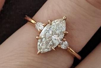 When Sadler91 first became betrothed her tastes were different than they are now. As is often the case, her style has changed and she was looking to switch from a Sapphire three stone engagement ring to a marquise that was one carat. She found this particularly lovely marquise diamond at Adiamor, and it's a big winner IMO! Congratulations on this beautiful ring!