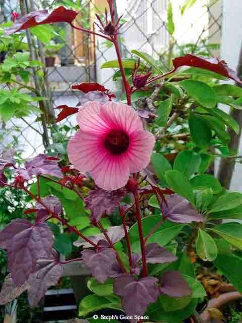 Glad I woke up early :-D Hello pinkie (Hibiscus acetosella 'Red Shield')!!