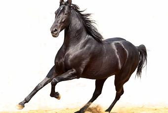 The Marwari horse is a rare breed known for its hardiness and upturned ears. A descendant of native Indian ponies crossed with Arabian horses, the Marwari comes in virtually every equine color. Displaying exceptional loyalty and bravery in battle, the Marwari was traditionally used as a cavalry horse before being used for light draft work and hauling. The breed is rare due to strict exporting guidelines, but since the early 2000s has become available in small quantities. The body should be compact and rounded with a medium to short back and close coupling, well sprung ribs and deep loins. The croup is long and well muscled with the tail attached high and curved gracefully. A low back is a fault and the Marwari should not be higher at the rump than at the withers. Viewed from the side the top line presents a sensual curve from the poll to the straight back rounding into the thigh. The neck should give the impression of sitting on top of the withers rather than in front of them. The underline should be long and deep through the heartgirth and flanks. The extreme angulation of the shoulder place the front legs further forward on the body. The front legs are straight and perpendicular to the ground, as are the rear cannons when points of hock and buttock are in the same vertical line. The stifle should be placed well forward and low in the flank area.
