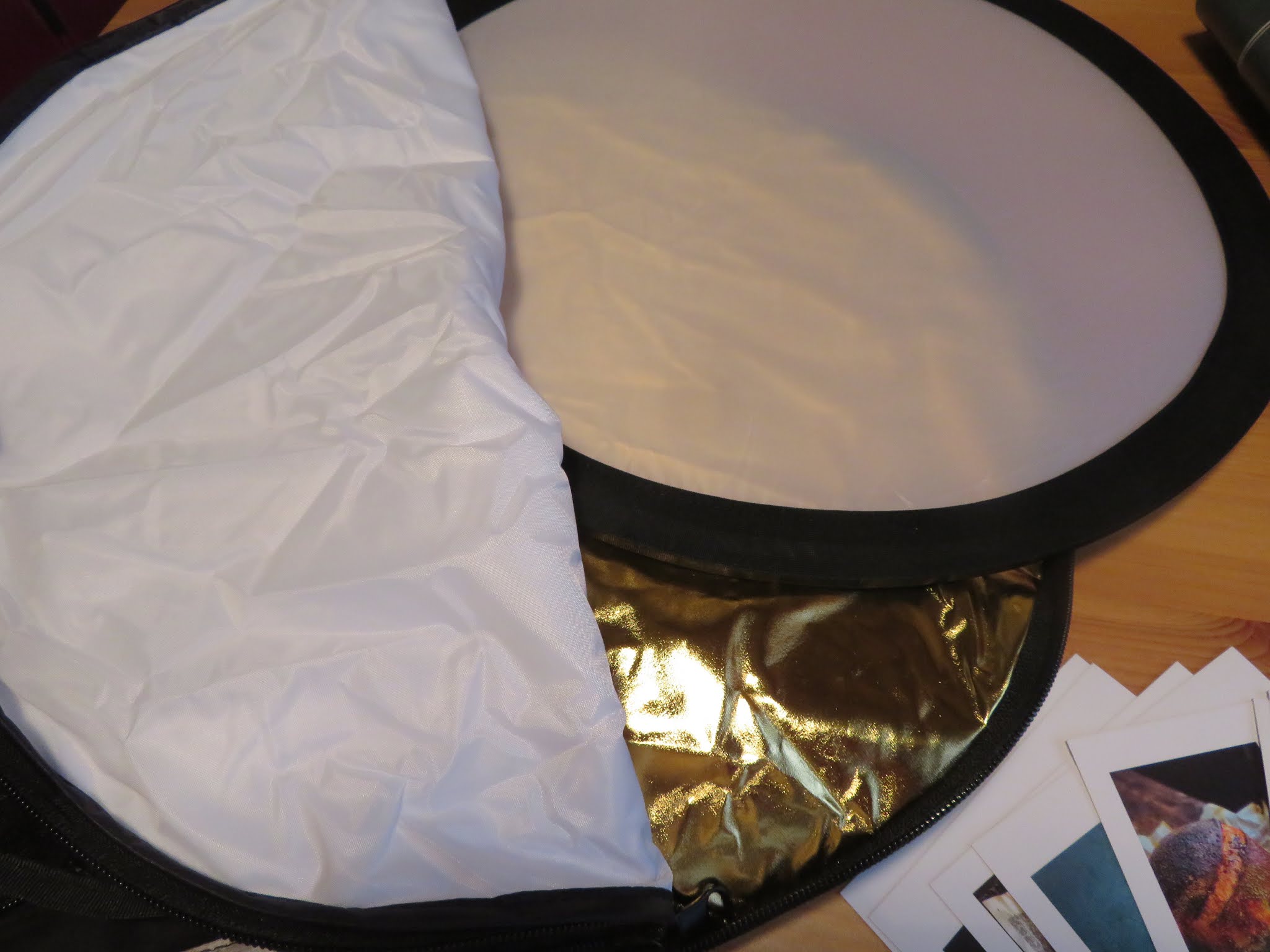 Included in the bag is a 15-inch photographic reflector and diffuser. This is the tool which all professional photographers have at the top of their kit bag.