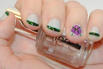 On both my sister's mani and mine, I just freehanded the green and purple with my medium striper brush then went overtop that with the glitter.