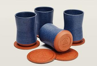 Not that there is anything wrong with drinking beer out of a bottle, if you want a bit of head and be more, let’s say sophisticated, this beer set offers both. The set features four leather coasters and four large belted cups. The cups feature a tapered, unglazed foot to break the cloud cover and it can be stacked to save space.