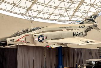 The Phantom on display is the aircraft flown by Duke Cunningham and William Driscoll in the Vietnam War from the USS Constellation (CV-64). Cunningham was the first ace to get all of his kills with missiles. On the flight where they became Aces (May 10, 1972), Cunningham and Driscoll shot down three enemy aircraft in a single mission, a feat that earned them the Navy Cross. Designed by McDonnell Aircraft and first flown in 1958, this classic fighter served with all three US services and air forces around the world. December 21, 2016 would mark the phinal retirement of the Phantom from US service. F-4 production ran from 1958 to 1981, with a total of 5,195 built, making it the most produced American supersonic military aircraft. McDonnell Aircraft would later merge with Douglas Aircraft in 1967. Of the 5,195 Phantoms built, 2,600 went to the USAF, and approximately 1,200 for the U.S. Navy and Marine Corps.