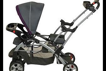 Baby Trend is one of the leading innovators of baby gear and has been manufacturing quality baby must have's for over twenty three (23) years. Baby Trend strives to accomplish their goal of providing the safest, most reliable products that are available at an affordable price. The first baby products introduced by Baby Trend were their Snap N' Go and Sit N' Stand strollers which have won numerous awards and continue to make their way into families homes as a must have. The Sit N' Stand is available in five (5) different variations; the LX, the DX, the Ultra, the Double, and the Tag-a-Long. The Sit N' Stand Ultra has many features that parents of multiples look for in a double tandem stroller, and some features that parents probably hadn't even thought of until Baby Trend debuted their Sit N' Stand Ultra. The Sit N Stand Ultra is not only a double stroller, but it is a travel system as well and is compatible with most major brands of infant car seats including Baby Trend, Graco, Evenflo, Britax, and Safety 1st. The front seat features a 5 point harness, removable shade canopy, removable child tray, parent tray with two cup holders, an easy one hand fold, foot activated rear break, a large storage basket, and much more! I have had a Sit n Stand DX model for over two years now, and personally, I love it! We bought it when my daughter was an infant and my son was a toddler. She sat in her Graco car seat in the front and my son sat in the back. When he was older, we removed the back seat and he had the option to sit or stand on the platform.