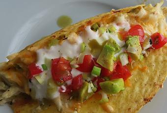 I enjoyed them topped with my favorite taco toppings. On this day some guacamole, sour cream, salsa and chopped spring onions. I also like to splash green tabasco sauce over top. This was enough for me and I didn't need anything else. You could serve a salad on the side if you wished!